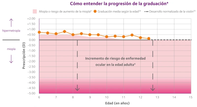 Controlar el aumento de la longitud axial y de la graduación en los niños puede ayudar a reducir el riesgo de desarrollar en la edad adulta patologías oculares relacionadas con la miopía, entre ellas: